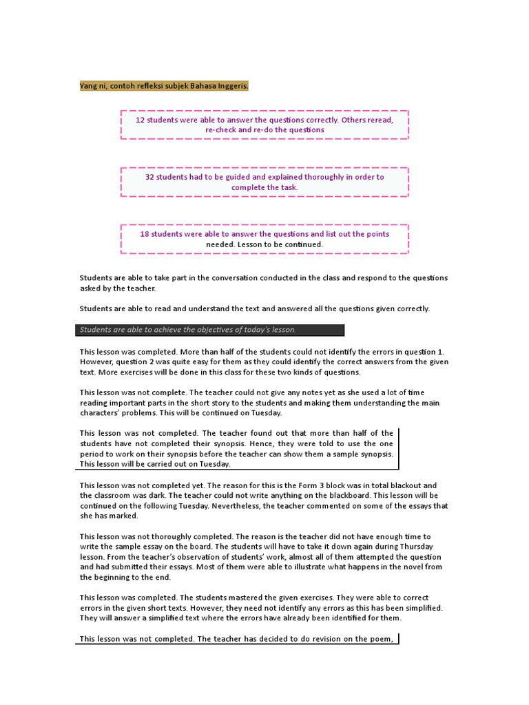 Refleksi rph pengajaran teknologi dan penaksiran tugasan 2. Contoh penulisan refleksi pengajaran yang boleh dijadikan panduan. Others reread re-check and re-do the questions 32 students had to be guided and explained thoroughly in order to complete the task.